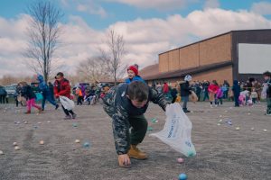 Children from walking, up to 5th grade are eligible to participate in the annual Easter Eggstravaganza egg hunt